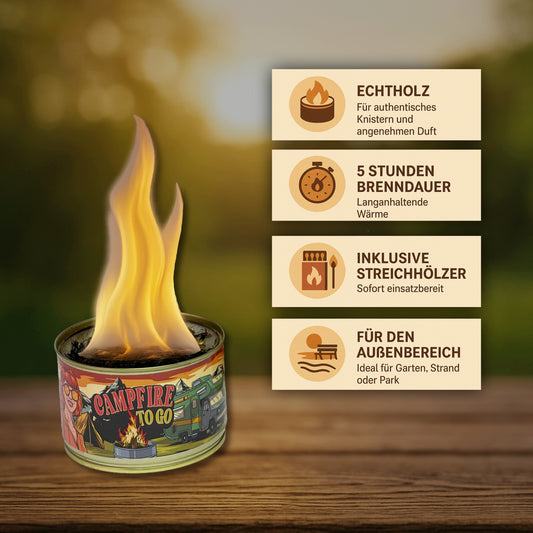 Campfire to go, Lagerfeuer aus der Dose, Lustige Geschenke, Mitbringsel, Outdoor, Feuerschale, Mini Lagerfeuer, Brenndauer < 5Std, Deko-Feuer - mit Echtholz
